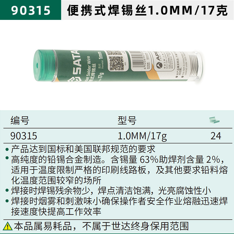 - 型號:90315便攜式焊錫絲1.0MM/17克