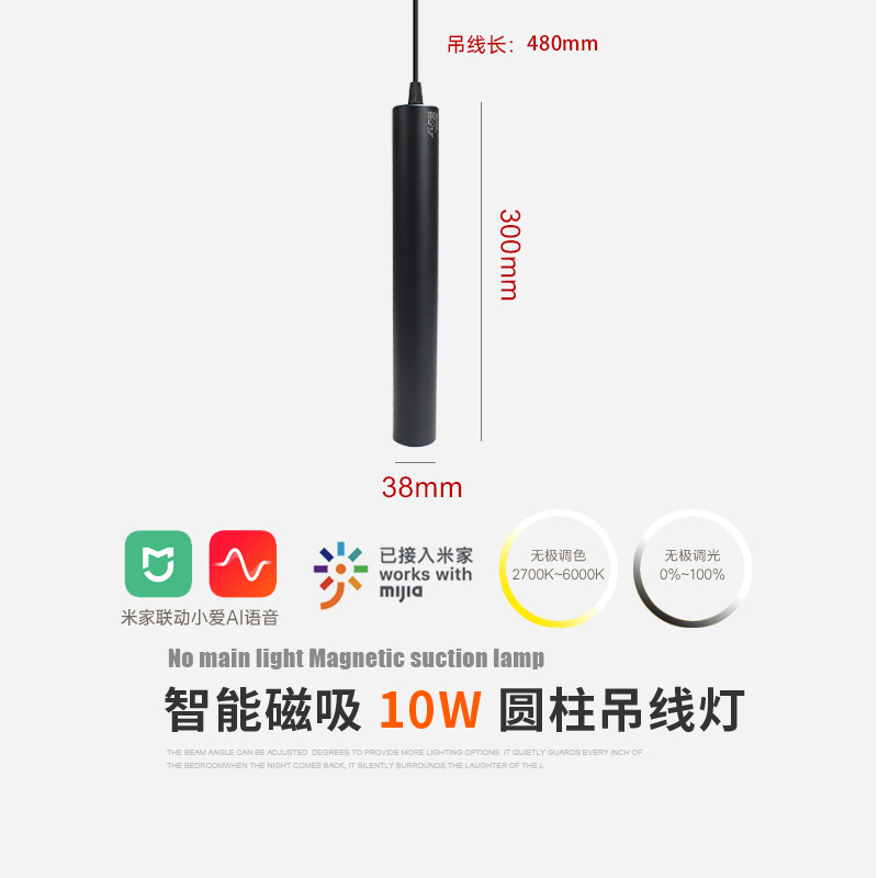 - Power: Single-Color Cylindrical Suspension Light 10W