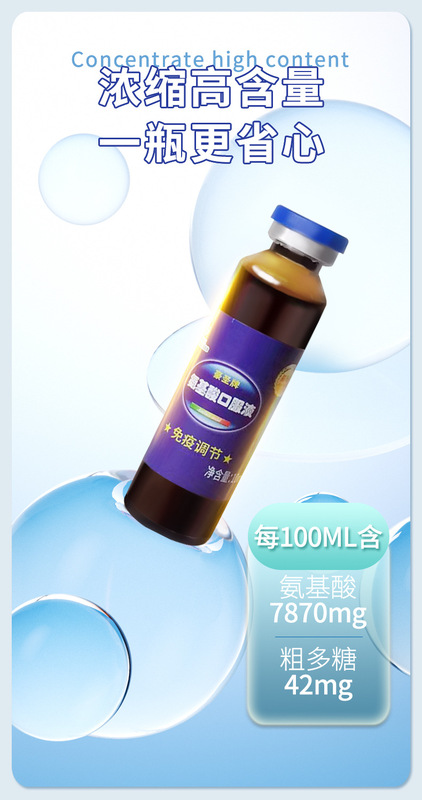 - Active Ingredients/Marking Ingredients and Content: Contains 7.87g of Amino Acids and 42.0mg of Crude Polysaccharides per 100ml