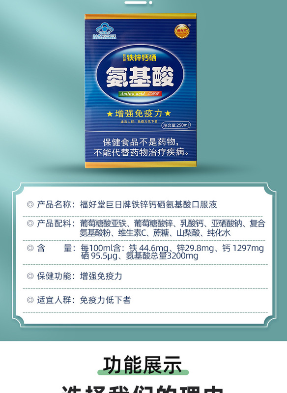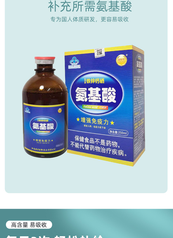 - Main Ingredients: Ferrous Gluconate, Zinc Gluconate, Lactic Acid Calcium, Sodium Selenite, Compound Amino Acid Powder, Vitamin C, Sucrose, Sorbic Acid, Purified Water