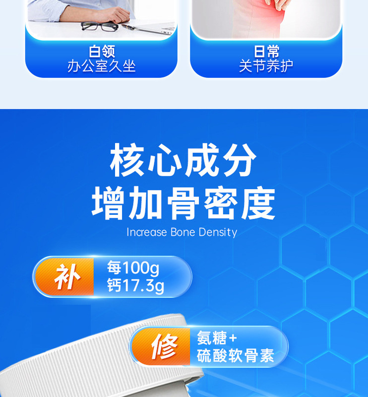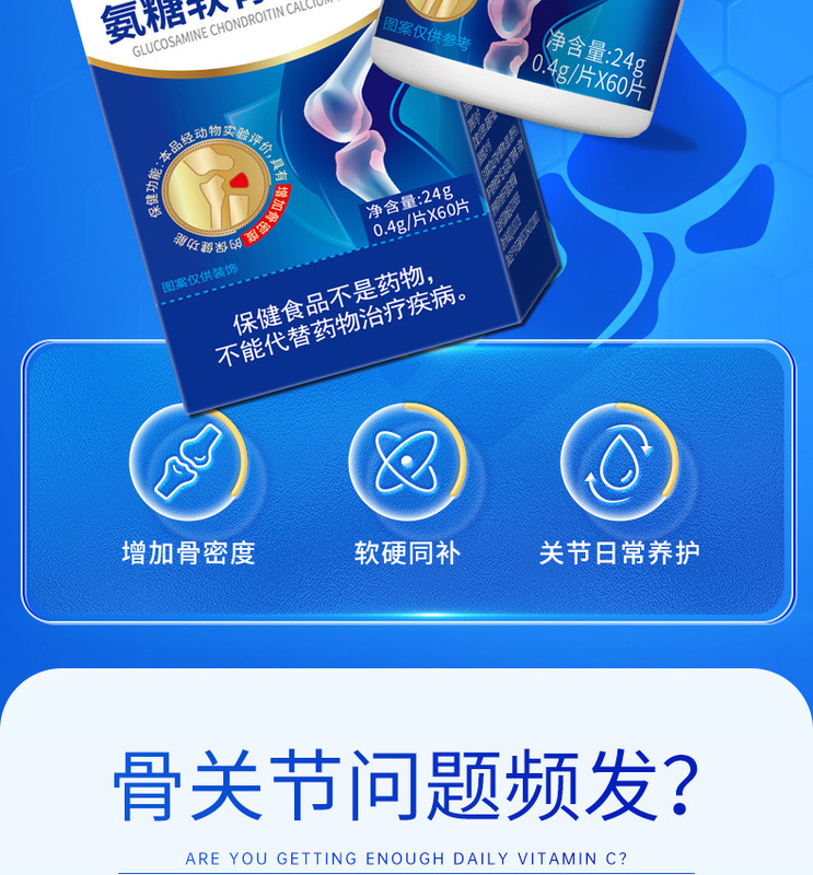 - Main Ingredients: Calcium Carbonate, Hydrochloride Glucosamine, Sodium Chondroitin Sulfate, Casein Phosphate Peptide