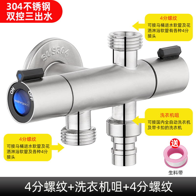 - Specification: 304【Dual-control Triple-outlet】4/16 inch thread + Laundry faucet + Laundry faucet