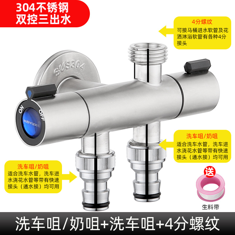 - Specification: 304【Dual-control Triple-outlet】4/16 inch thread + 6/24 inch thread + Car wash nozzle