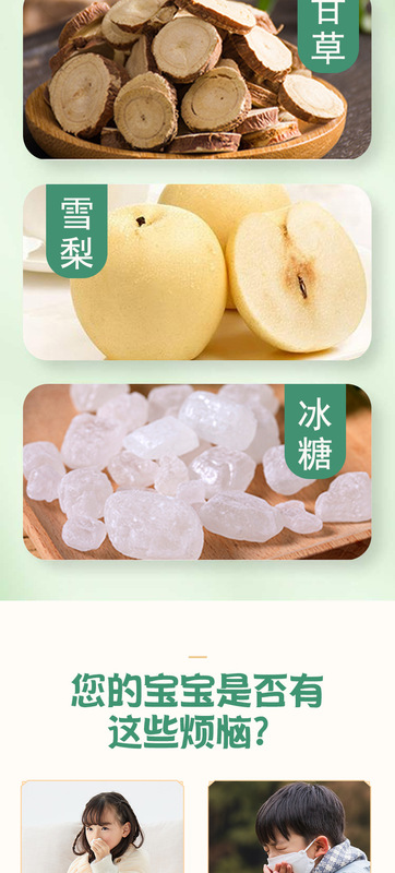 - 原料與配料:白砂糖,冰糖,蜂蜜,梨汁,薄荷,甘草,羅漢果,橘皮,高良姜,金銀花等