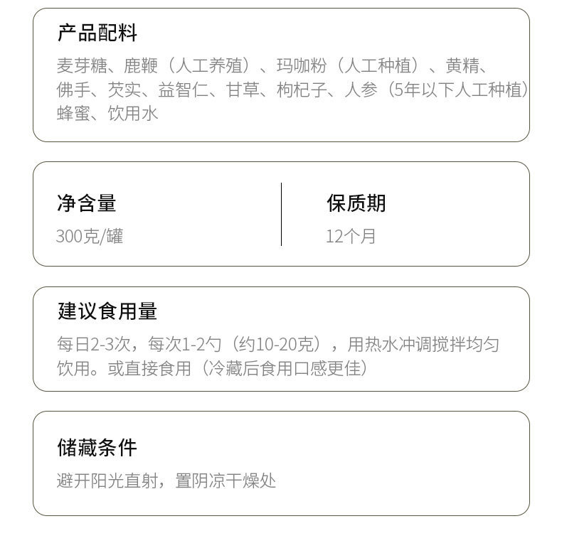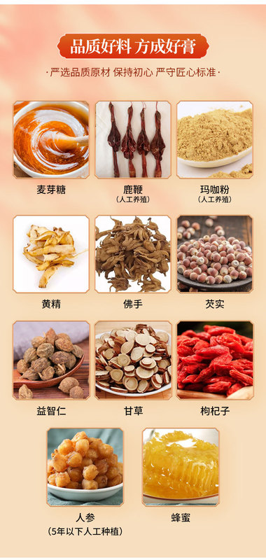 - Main Ingredients: Ginseng, Maca Powder, Oyster, Mulberry, Goji Berry, etc.