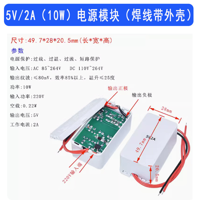 - Model: 5V/2A power module (wires + casing)