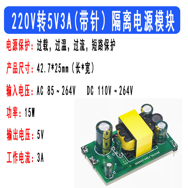 - Model: 220V to 5V 3A power module (15W)