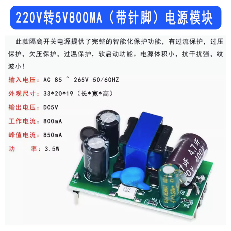 - Model: 220V to 5V 800MA step-down module