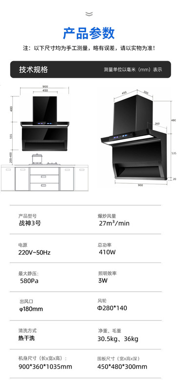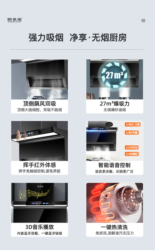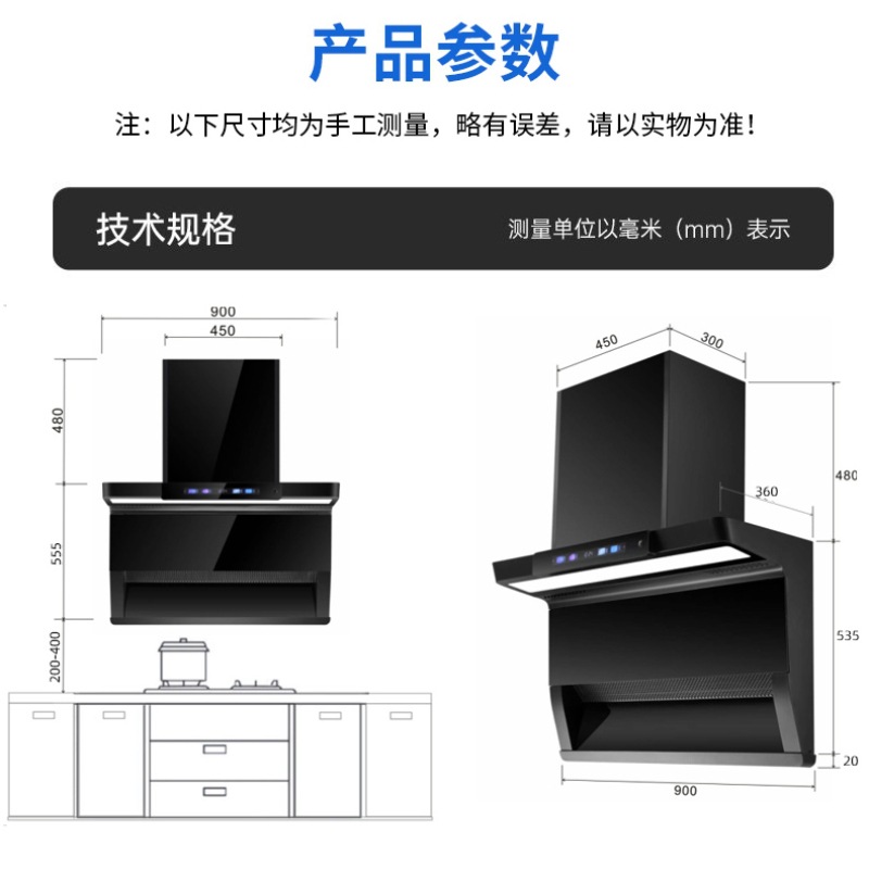 - Range Hood Type:Top-Side Dual Extraction