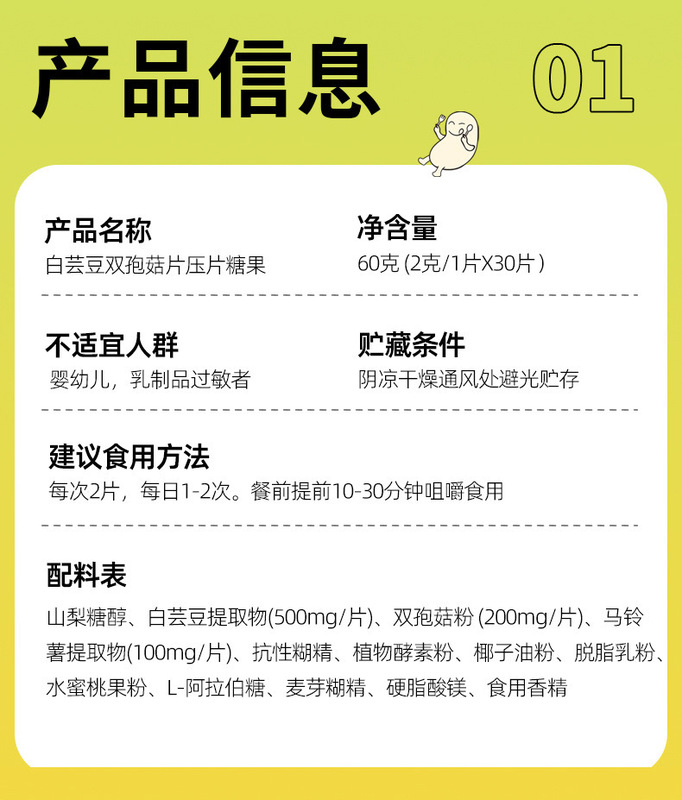 - Product Name: White Kidney Bean and Beneficial Mushroom Tablets