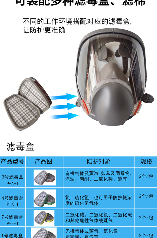 - Model: Full-face respirator + No. 3 filter box (7-piece set)