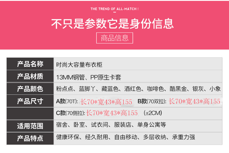 - Specification: 70 Fabric Wardrobe