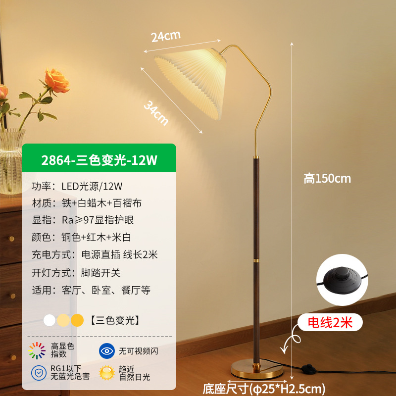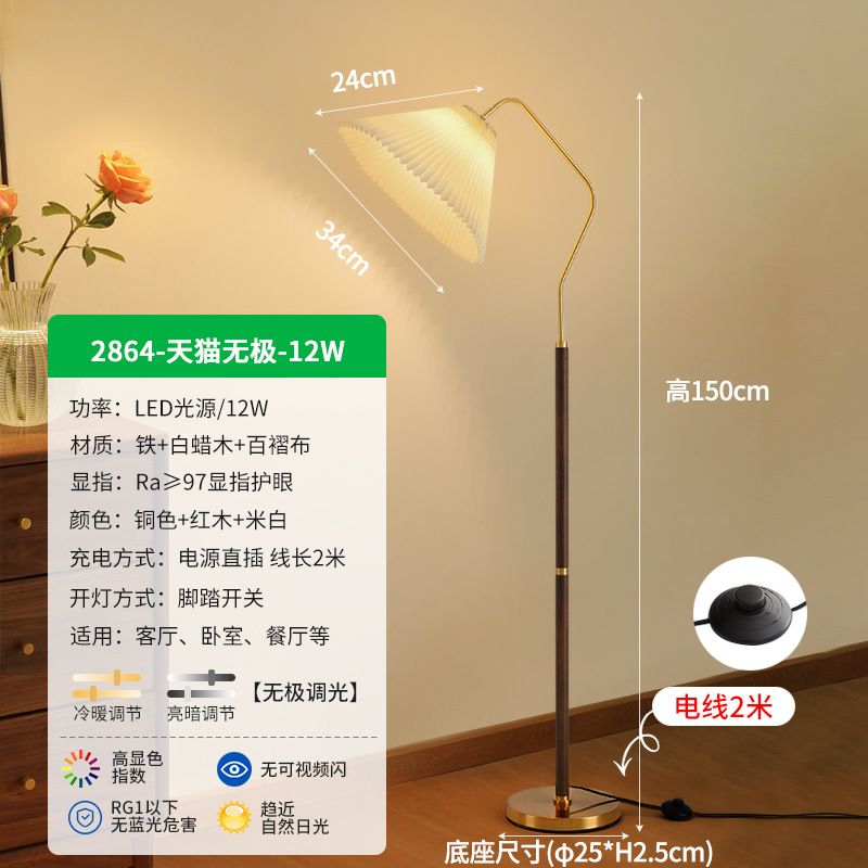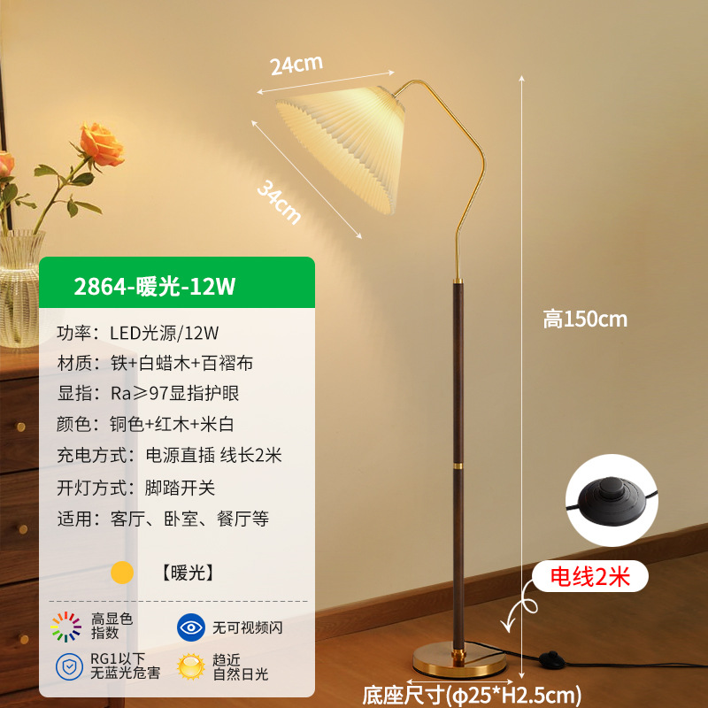- Lampshade Material: Ironwork + Wax Wood + Pleated Fabric