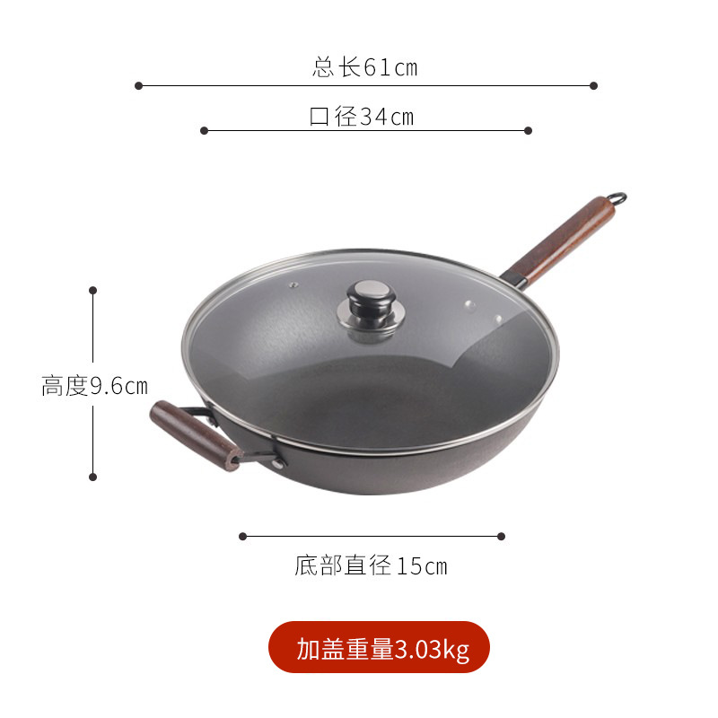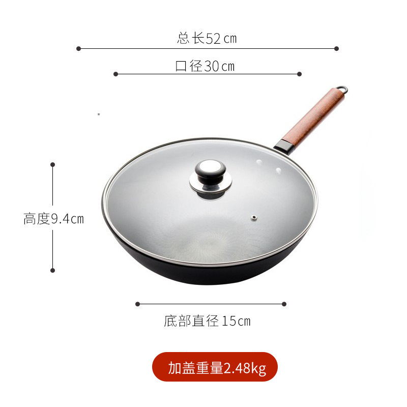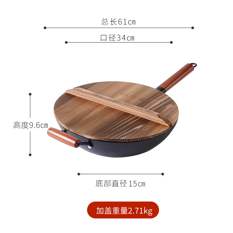 - Specification: 30cm without auxiliary handle, includes wooden lid