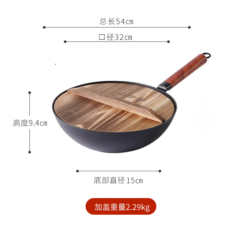 - Specification: 32cm without auxiliary handle, includes wooden lid