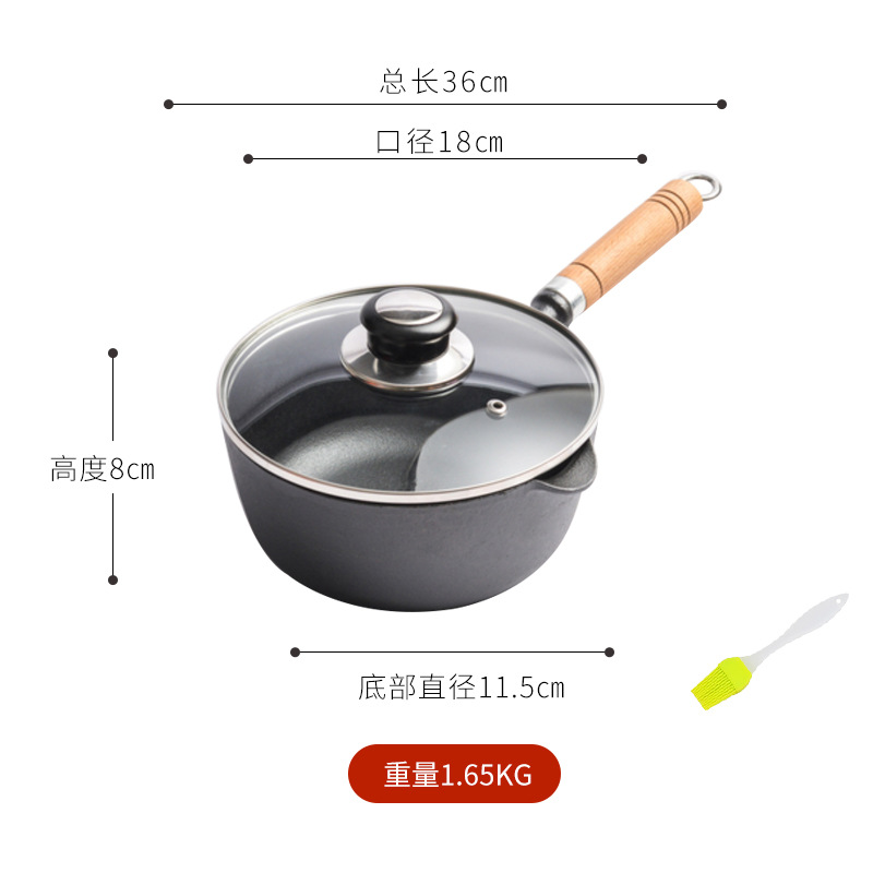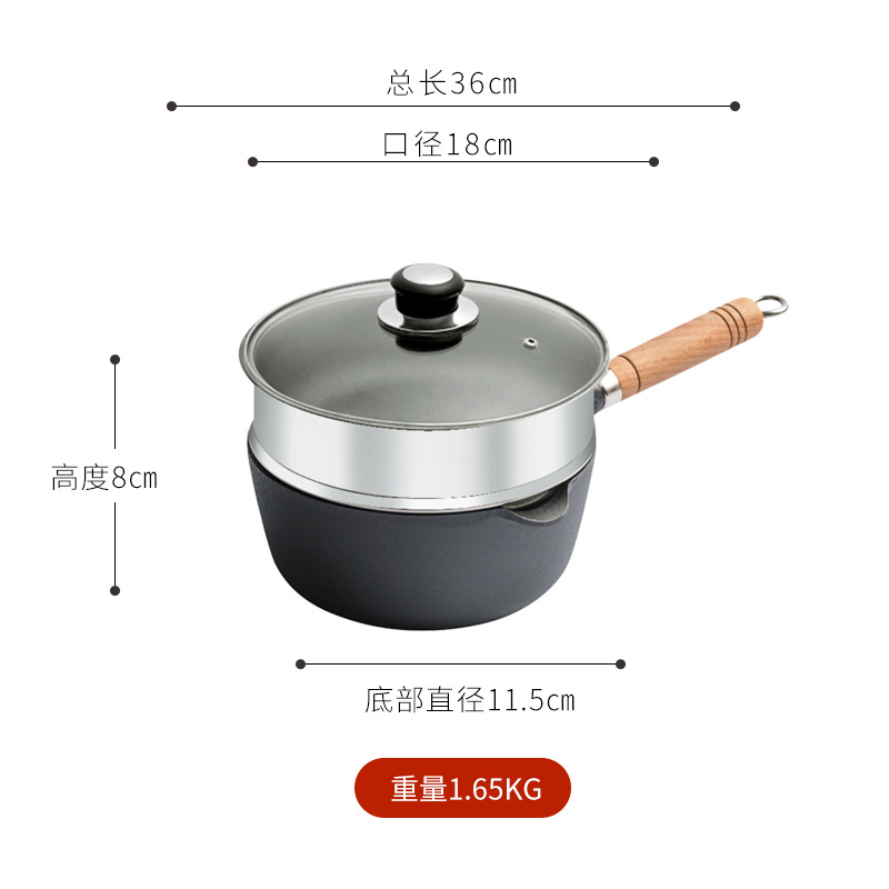 - Specification: 18cm Wooden Handle Milk Pot + Glass Lid + Steamer