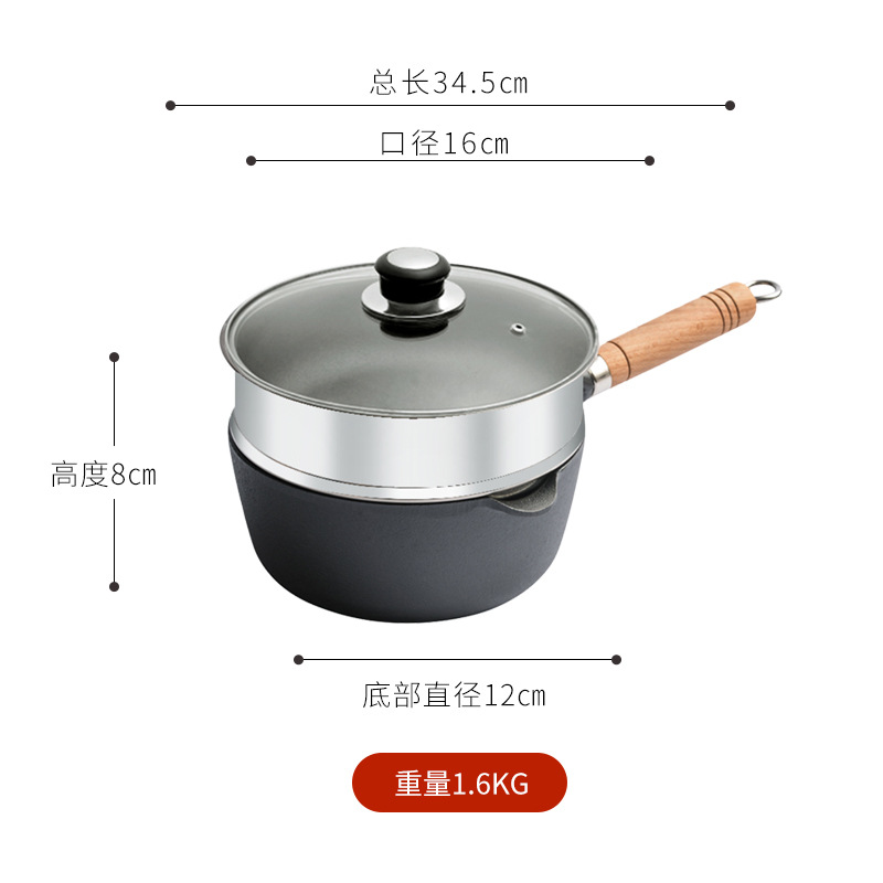 - Specification: 16cm Wooden Handle Milk Pot + Glass Lid + Steamer