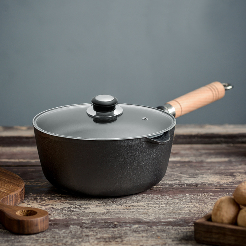 - Specification: 18cm Wooden Handle Milk Pot + Glass Lid