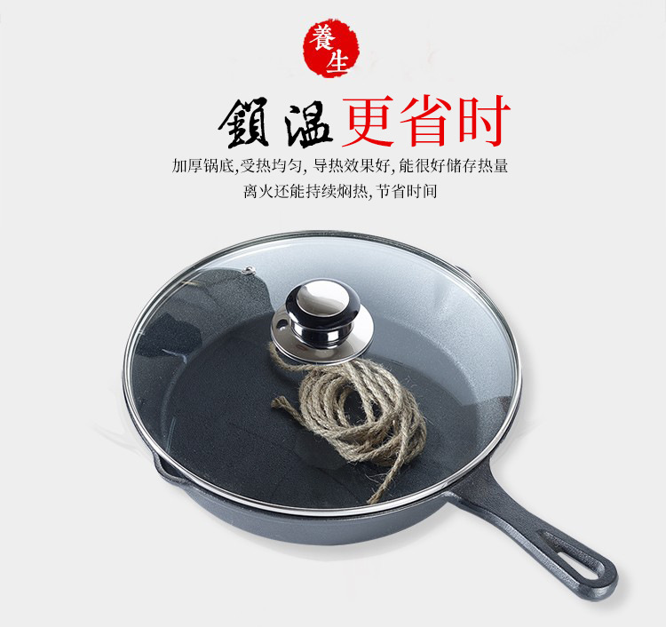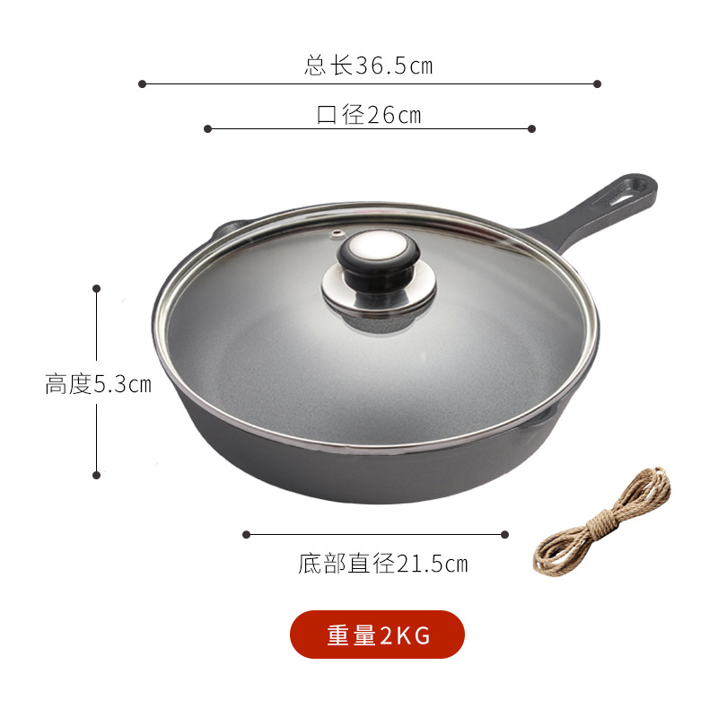 - Specification: 26cm Flat-bottomed Frying Pan + Glass Lid (with hemp rope)