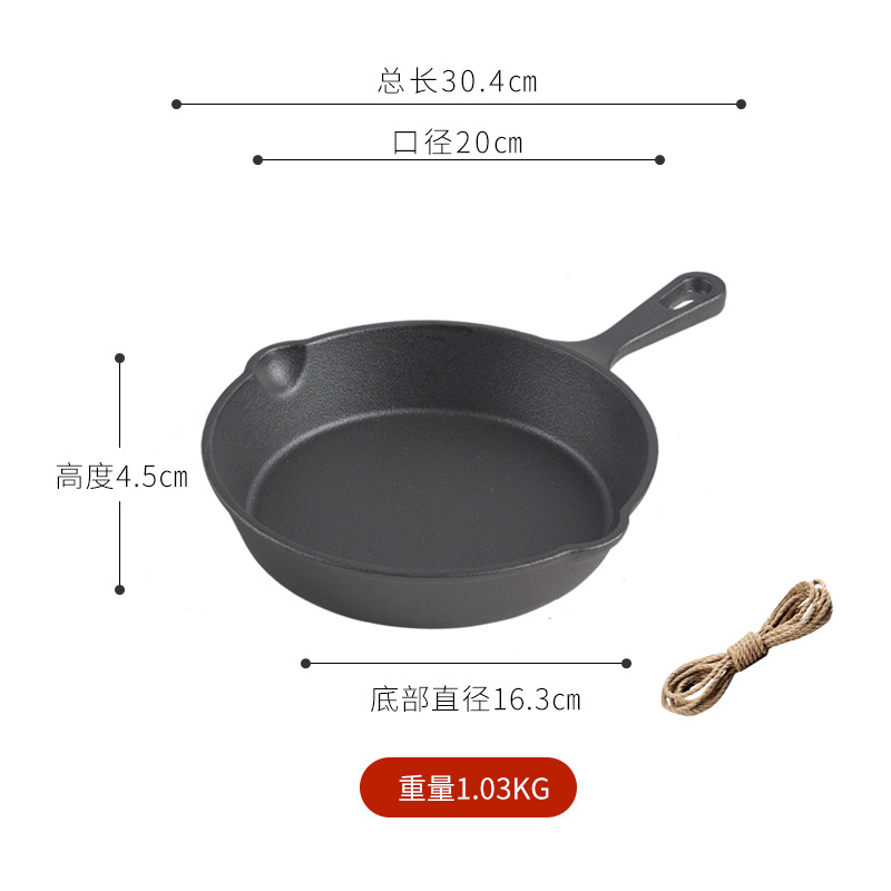 - Specification: 20cm Flat-bottomed Frying Pan (with hemp rope)