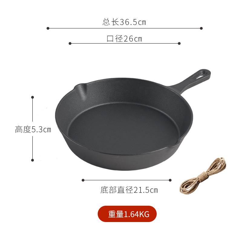 - Specification: 26cm Flat-bottomed Frying Pan (with hemp rope)