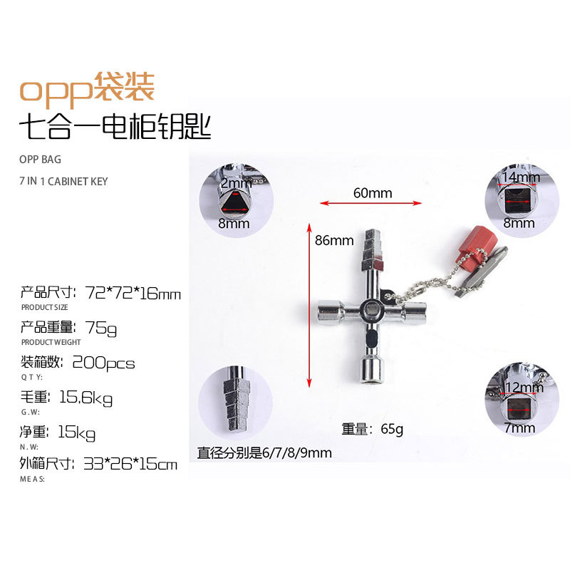 - 規格型號:opp袋七合一電櫃鑰匙【70克】