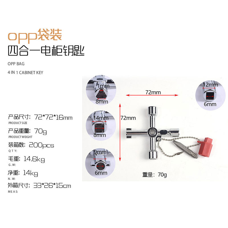 - 規格型號:opp袋四合一電櫃鑰匙【70克】
