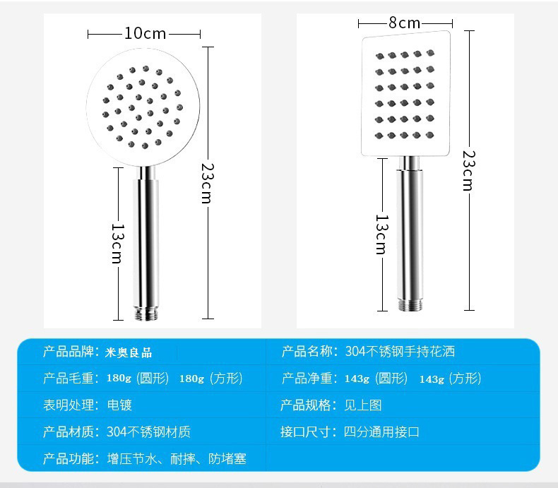 - Specification: 304 Round Hand Spray
