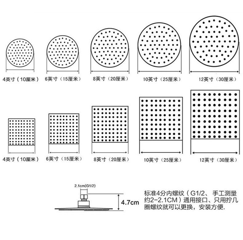 - Specification: 12-inch [304 Square]