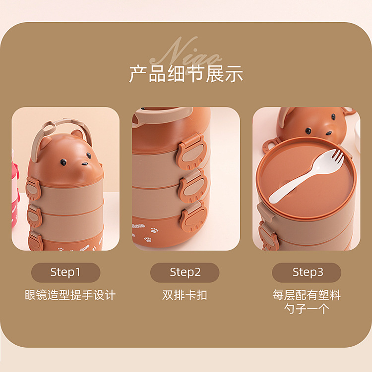 - 規格:不鏽鋼三層1900ml棕色