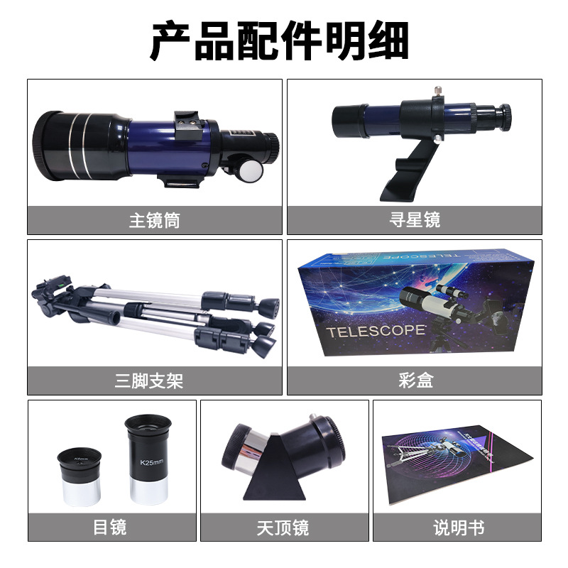 - Specification: (Deep Blue) Standard Astronomical Telescope Package + Accessories (Phone Clip + Portable Bag + Camera Remote Control + Moon Filter)