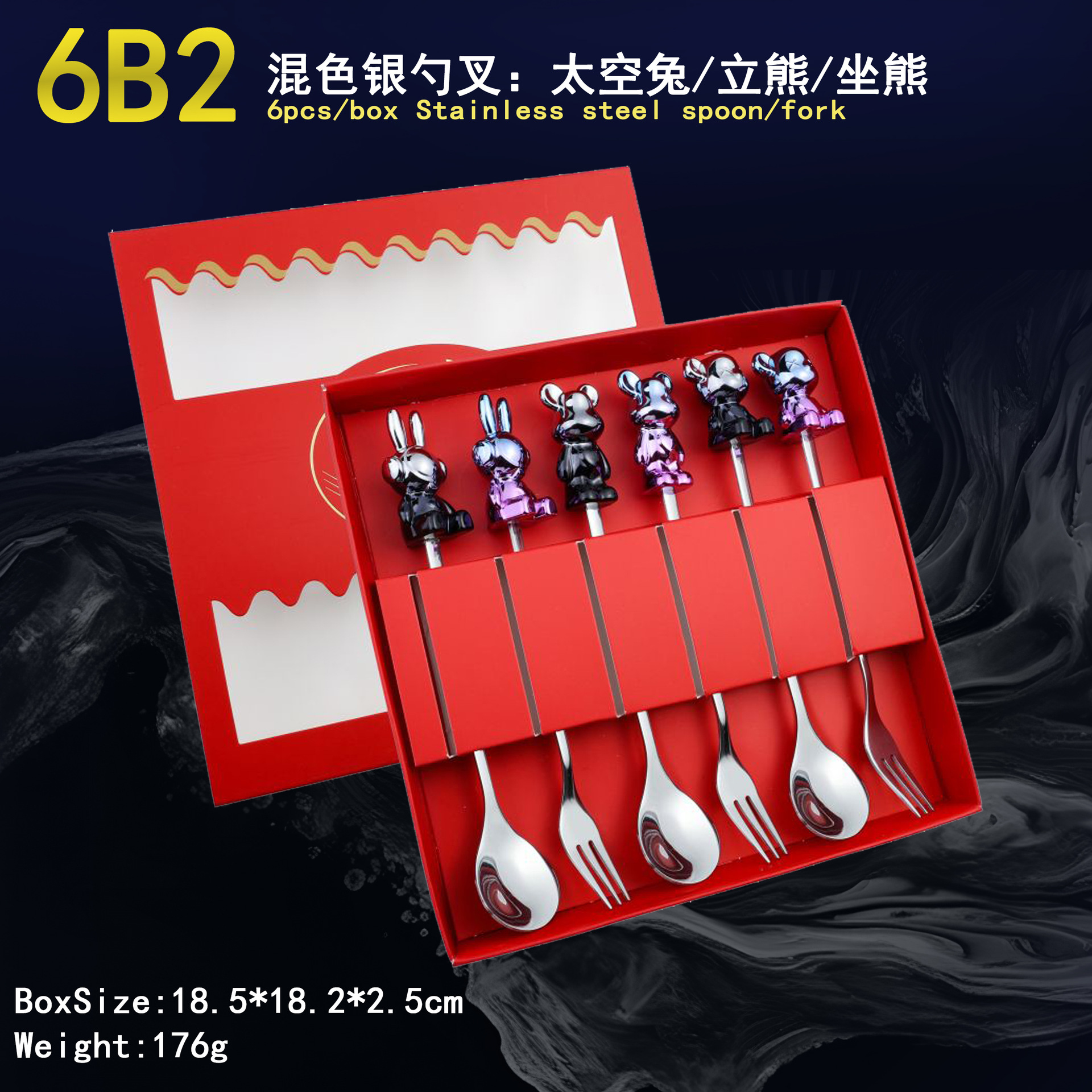 - Specification: 6B2-Spoon/Fork six-piece set-Mixed Silver