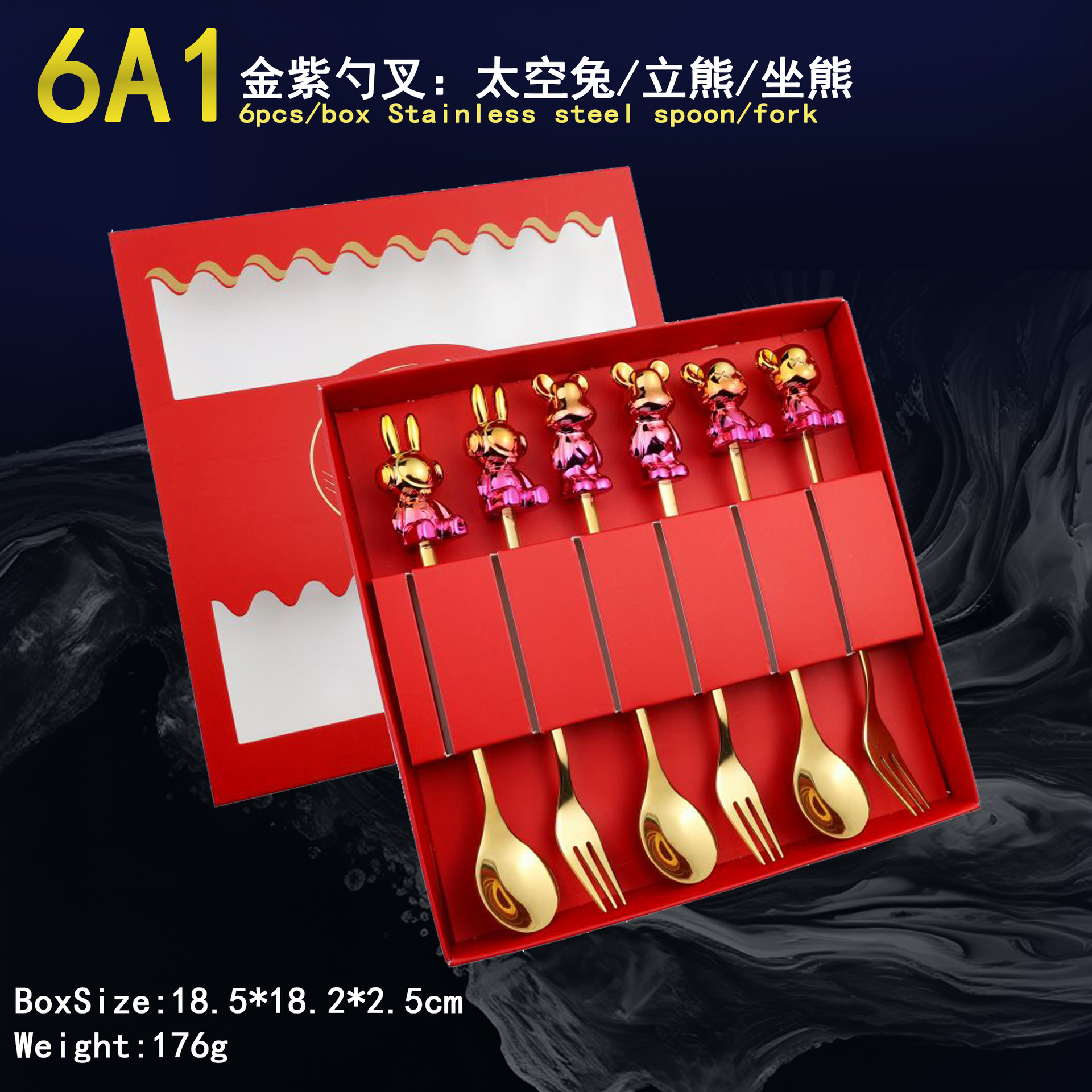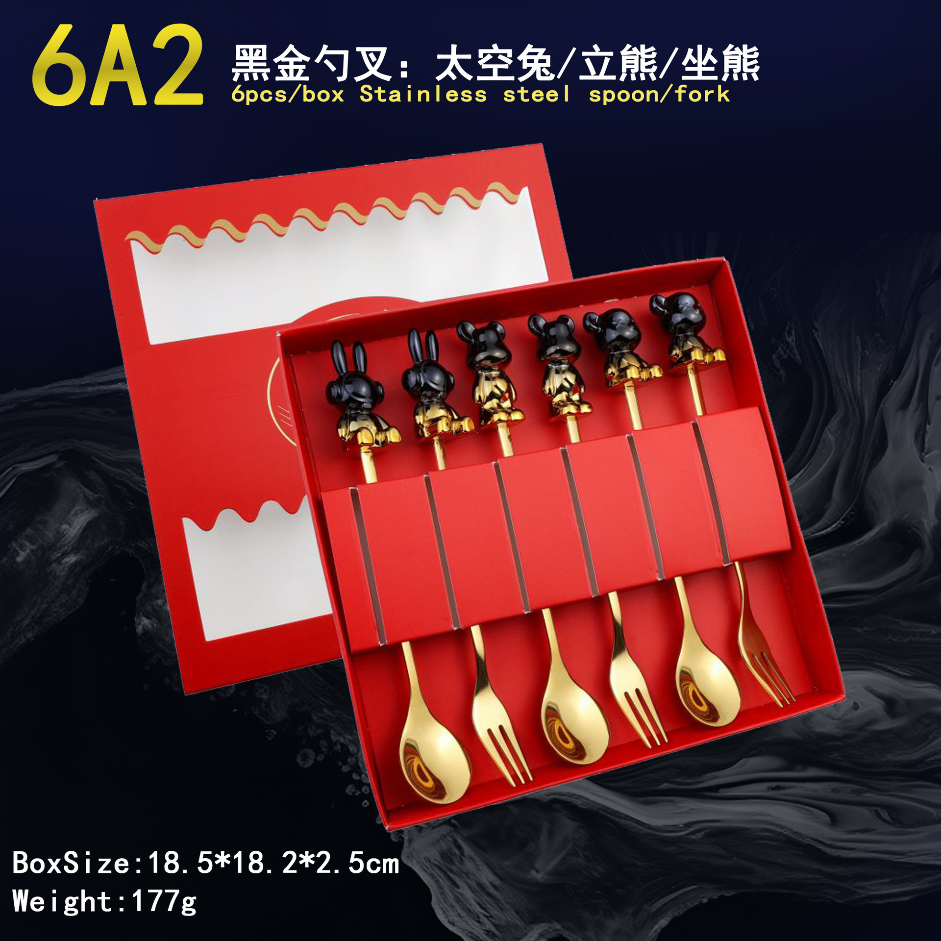 - Specification: 6A2-Spoon/Fork six-piece set-Black Gold