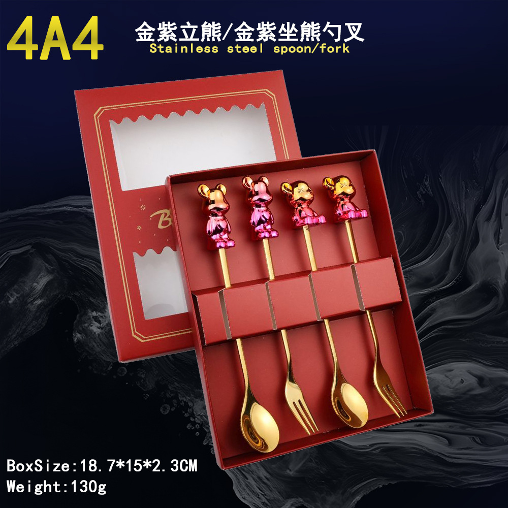 - Specification: 4A4-Spoon/Fork four-piece set-Gold Purple