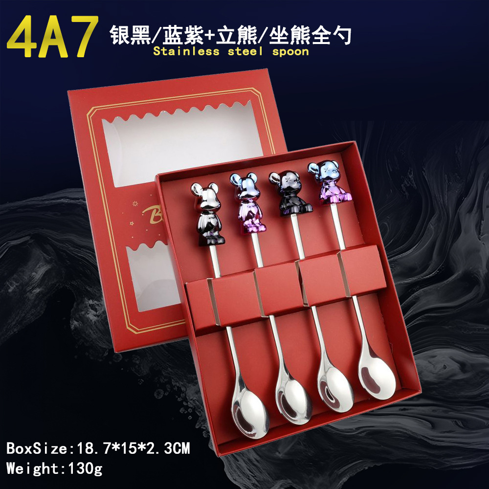 - Specification: 4A3-Spoon/Fork four-piece set-Black Silver
