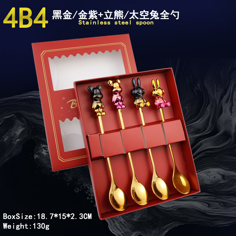 - Specification: 4A2-Spoon/Fork four-piece set-Black Gold