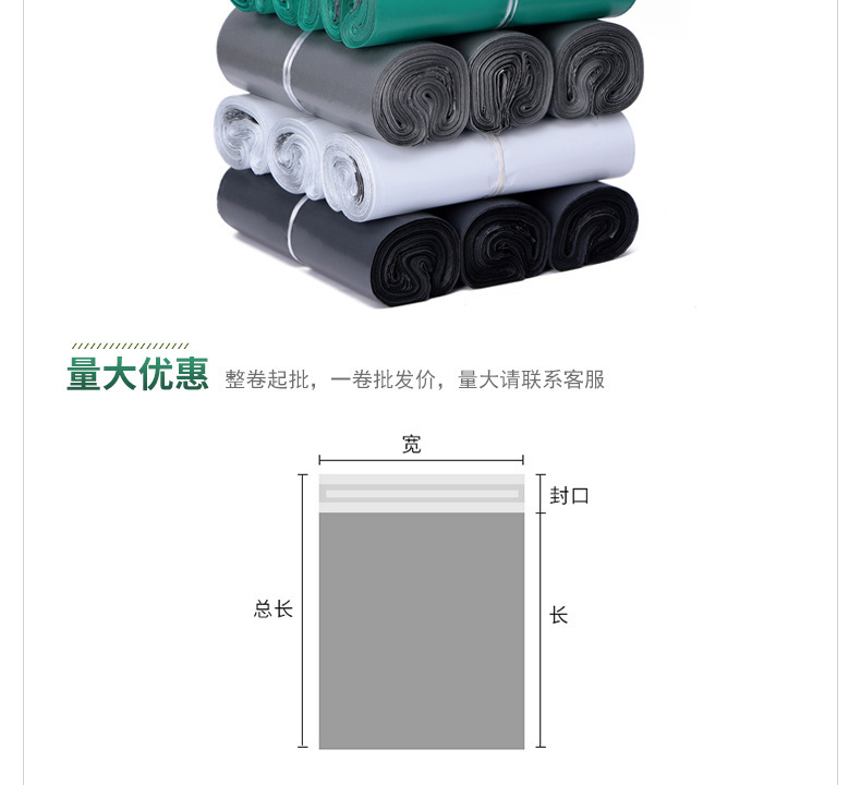 - 規格型號:墨綠色(常規10絲);50*65【1卷/100個】