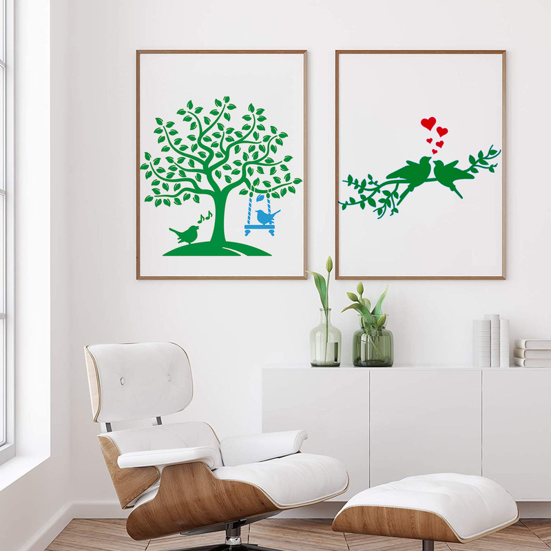 - Specification: 16 pieces of small birds and big trees series templates