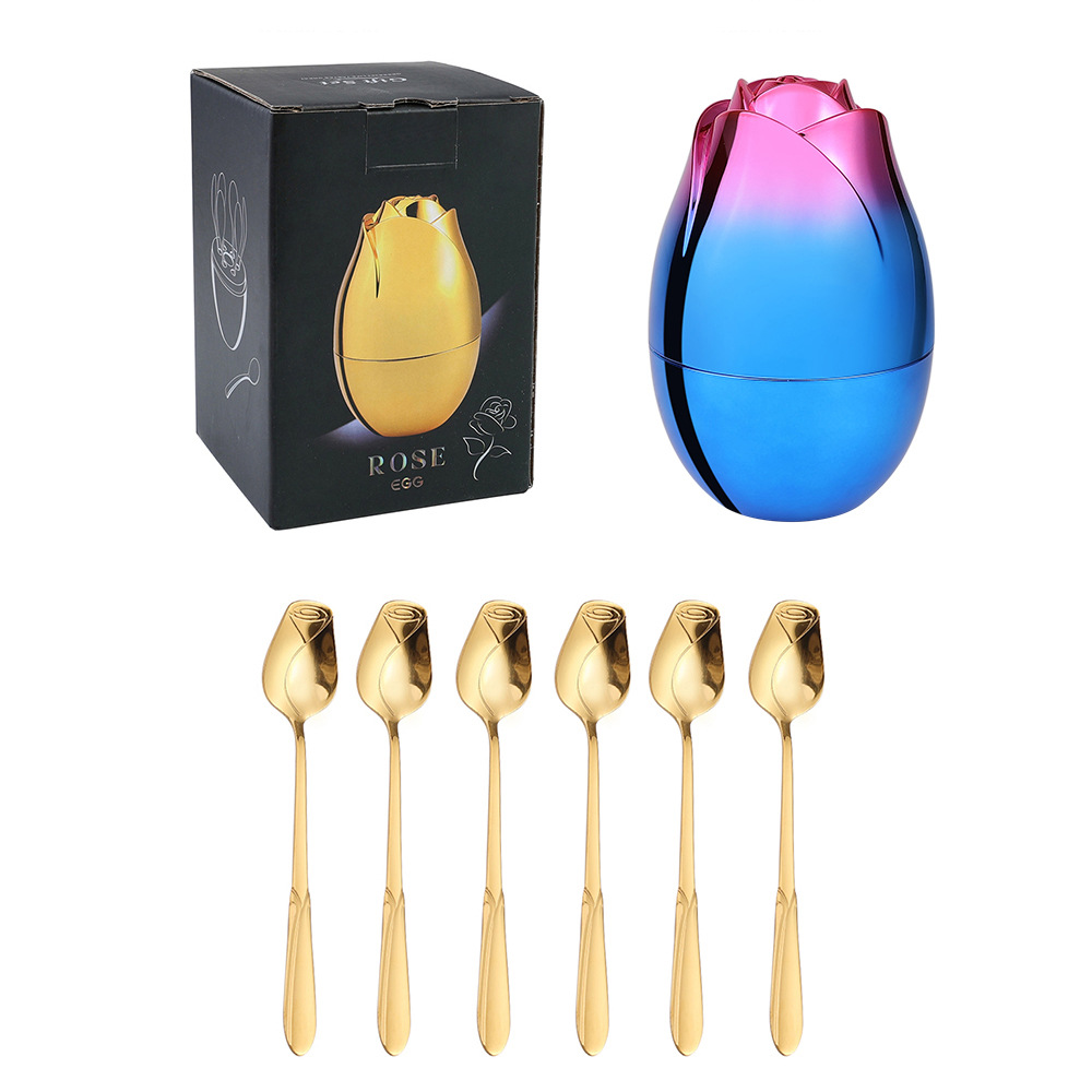 - 規格:410玫瑰勺叉金色6PCS+粉藍小玫瑰蛋