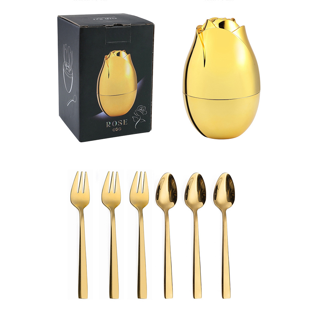 - 規格:410玫瑰勺叉金色6PCS+金小玫瑰蛋