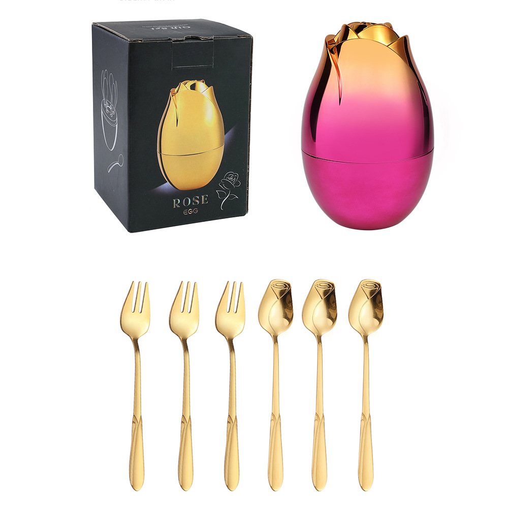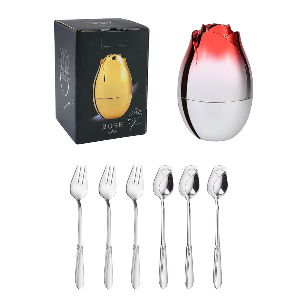 - 規格:410玫瑰勺叉本色6PCS+紅銀小玫瑰蛋