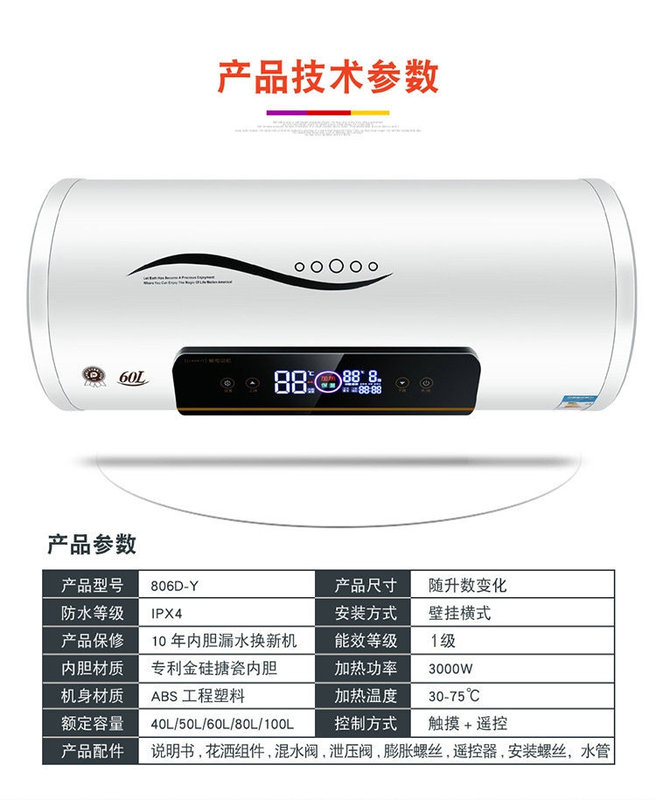 - Water Heater Capacity: 40-100L
