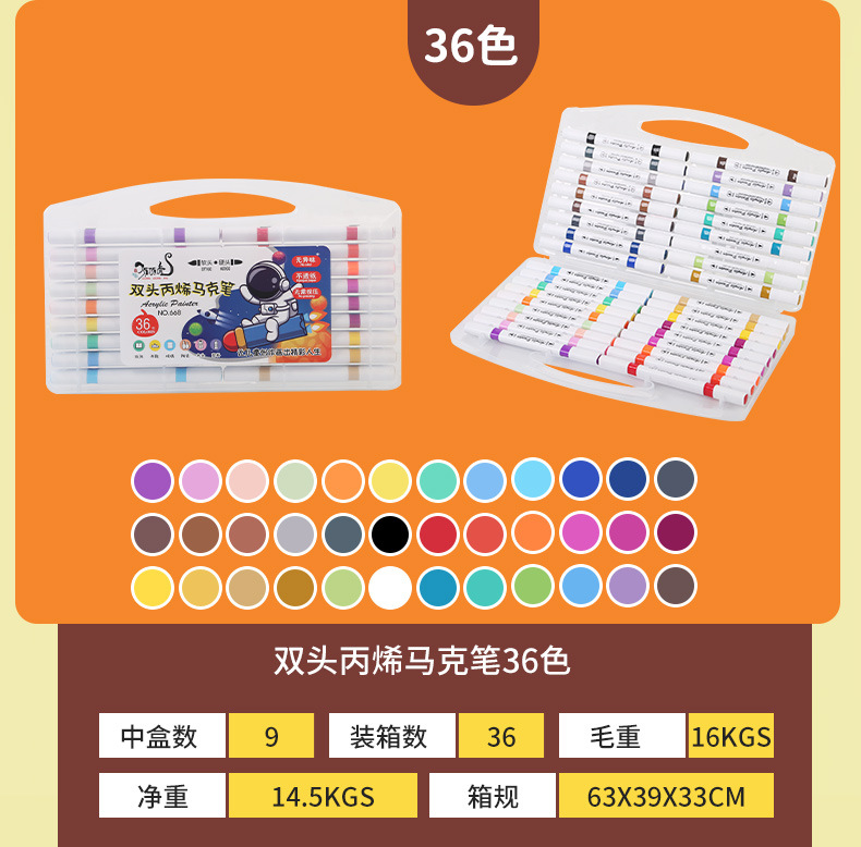 - 規格:雙頭丙烯馬克筆36色