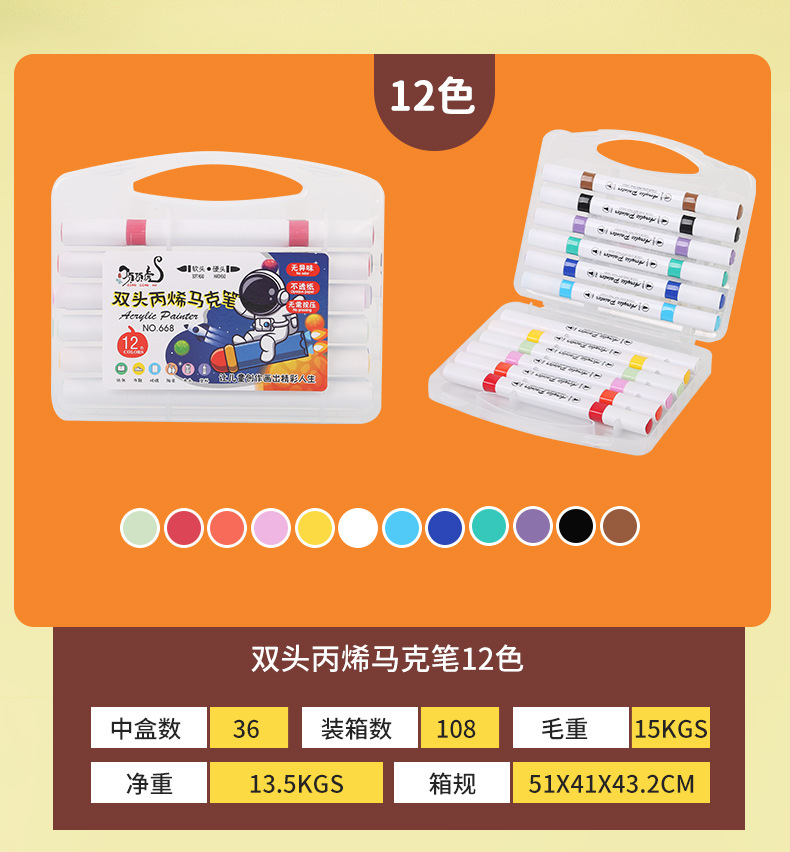 - 規格:雙頭丙烯馬克筆12色