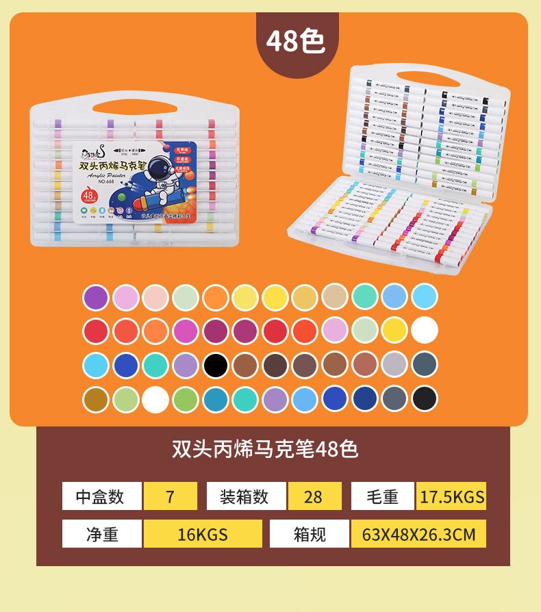 - 規格:雙頭丙烯馬克筆48色