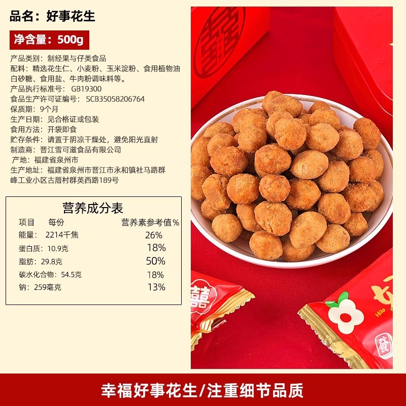 - Packaging Specification: 【1 jin】Good Fortune Peanuts 500g (approximately 34 packs)