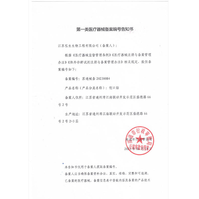 - Drug (Device) Approval Number:苏通械备20200102号