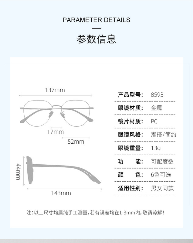 - 鏡架材料:金屬