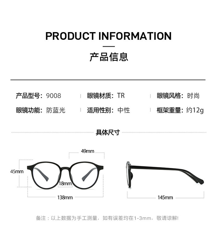 - 眼鏡款式:橢圓框