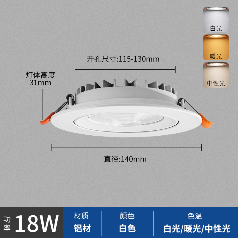 - Power: 18W, Diameter 140mm, Height 31mm, Cut-out Size 115-130mm